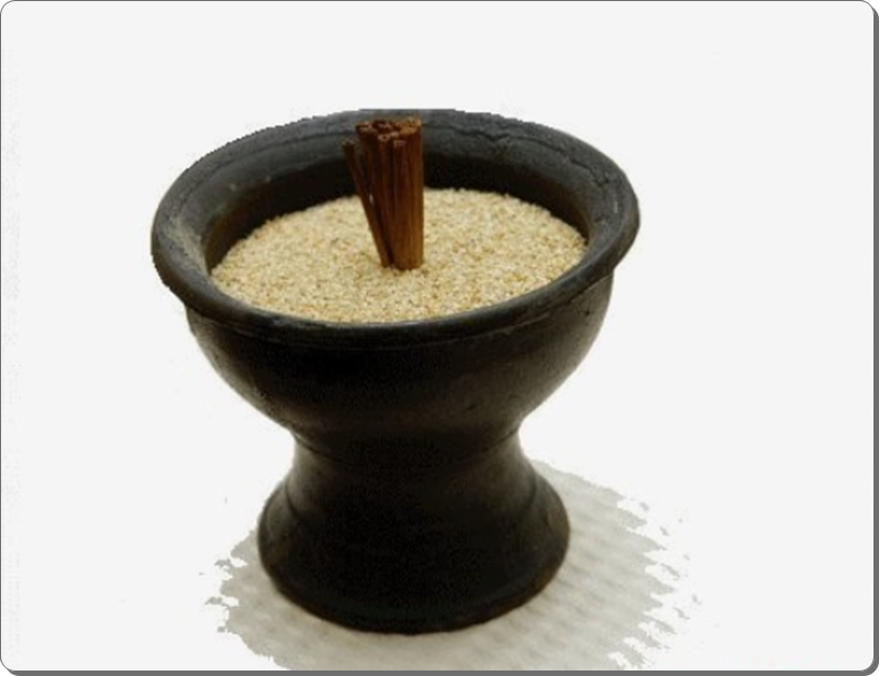 모삿그릇의 의미를 검색해보면 모래를 담고 그 위 띠묶음을 세워두는 그릇으로