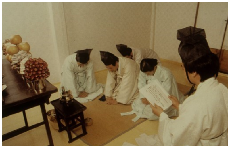 조상께 살아 있는 자손이 공경을 드리는 하나의 의례입니다.